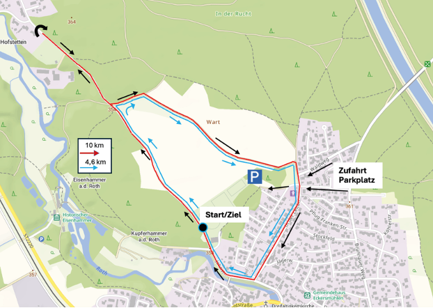 1x große Runde mit Wende kurz vor Hofstetten + 3x Hobbylaufrunde